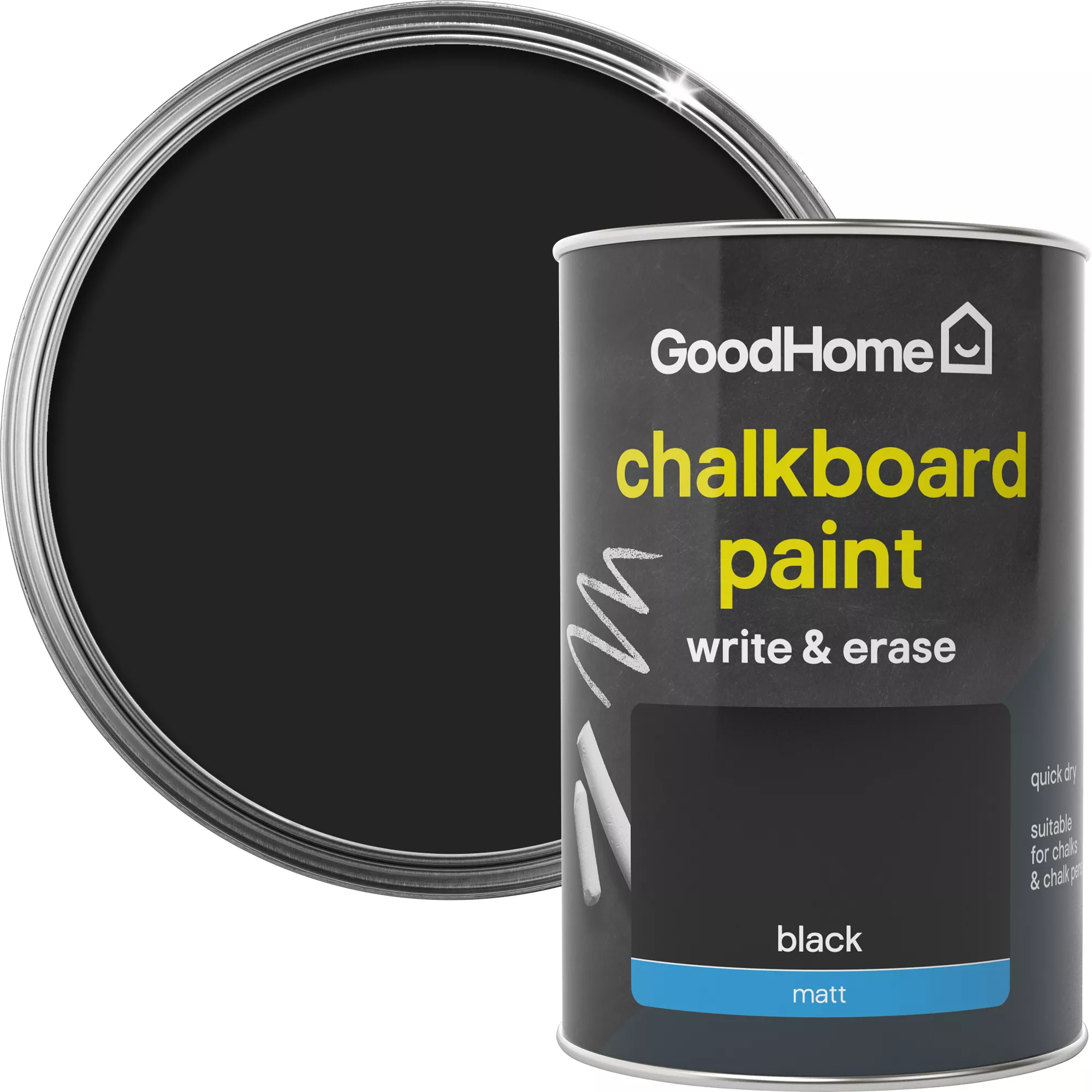 This Black matt chalkboard paint has been specially designed to give a durable and long-lasting finish on a range of surfaces. Simply apply with a brush or roller and leave for 4 hours to dry – a great way to give the surfaces additional protection. Covers up to 12mยฒ per litre on average.