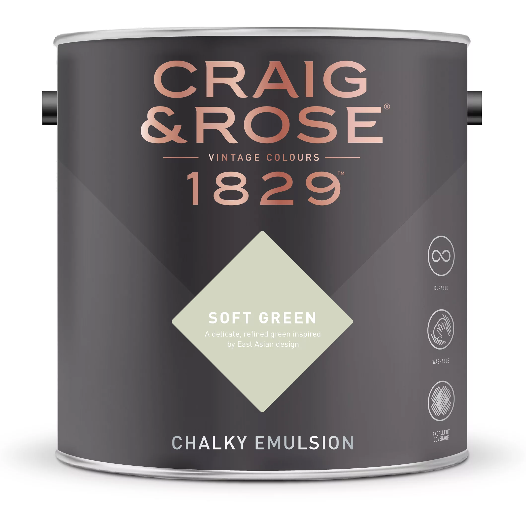 - Craig & Rose are famous for their durable Chalky Emulsion – a luxurious soft and chalky matt finish with excellent depth of colour, superior coverage and a finish that can be wiped down. This renowned emulsion is perfect for interior walls and ceilings and can also be used for upcycling furniture when finished with a protective wax or varnish. Soft Green is a delicate and refined green for light walls inspired by Frank Lloyd Wright’s love of East Asian design. Use with 1829 White Undercoat.