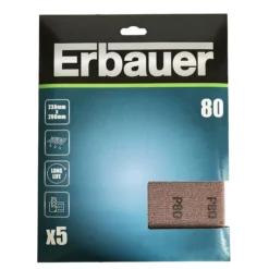Erbauer 80 Grit Medium (80 To 100) Metal, Paint, Plaster & Wood Hand Sanding Sheet, Pack Of 5