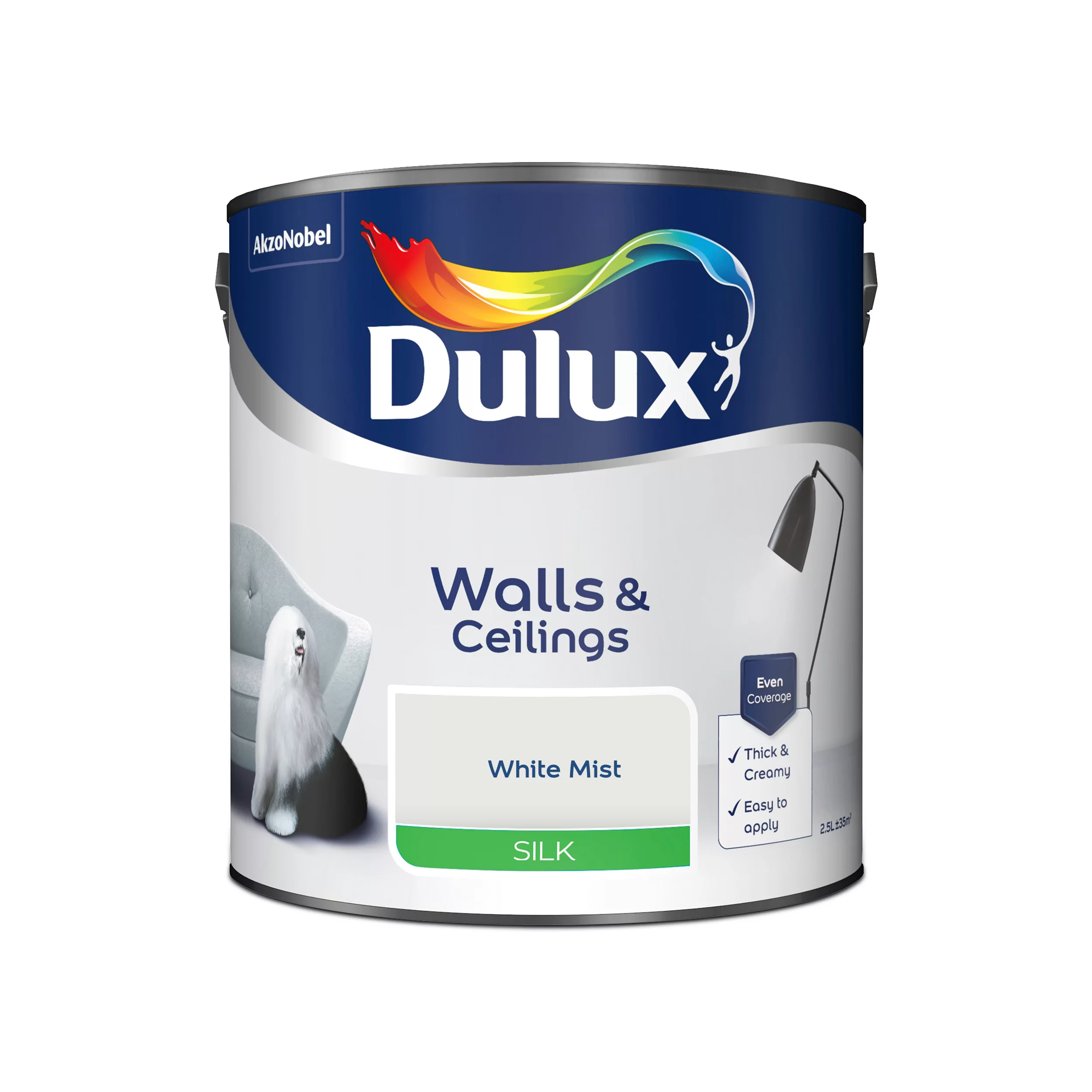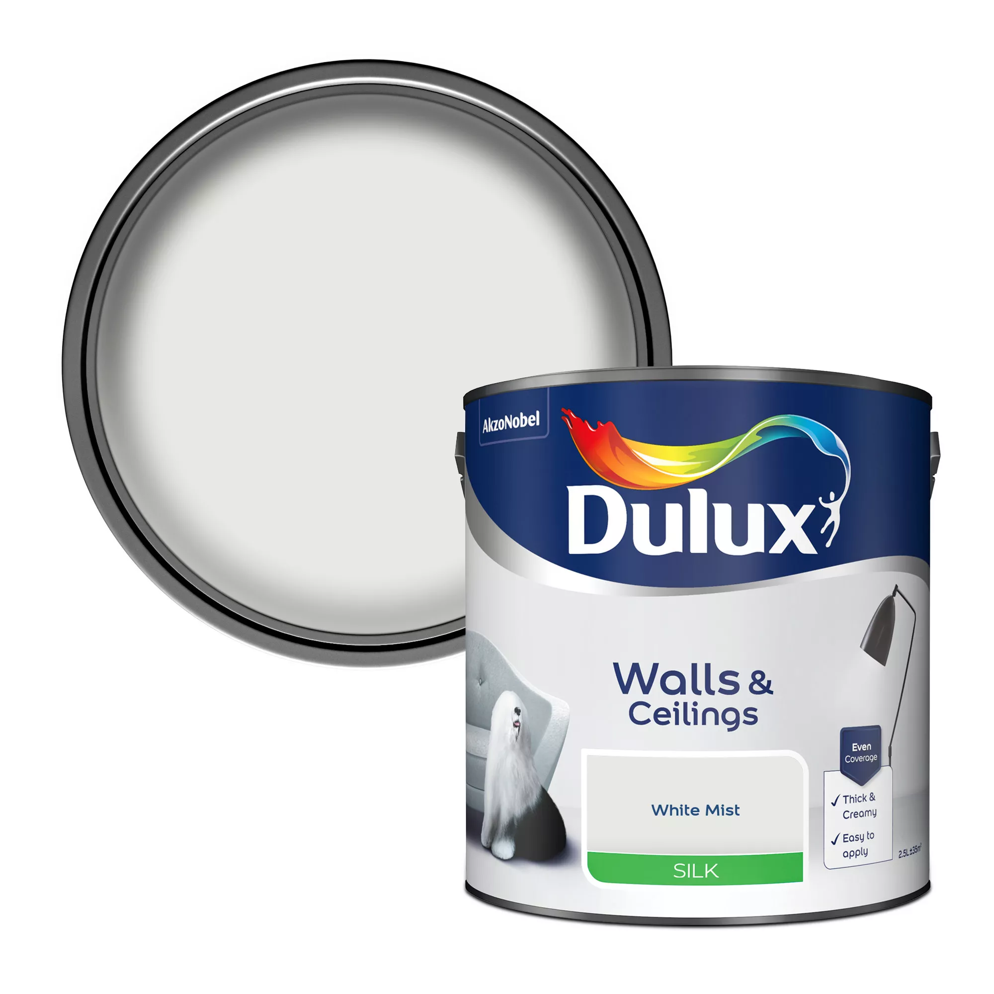 - Dulux Silk is a smooth and creamy emulsion paint for use on walls and ceilings, giving a delicate shine finish. Silk emulsion looks especially good on perfectly plastered or skimmed walls. At B&Q we want you to be satisfied with your colour selection. Not all monitors will display colours the same and paint tins may not show the same colour as your walls do in natural light. We therefore recommend you order a tester pot online or pop in store to pick one up so you are sure that this is the right colour for you.