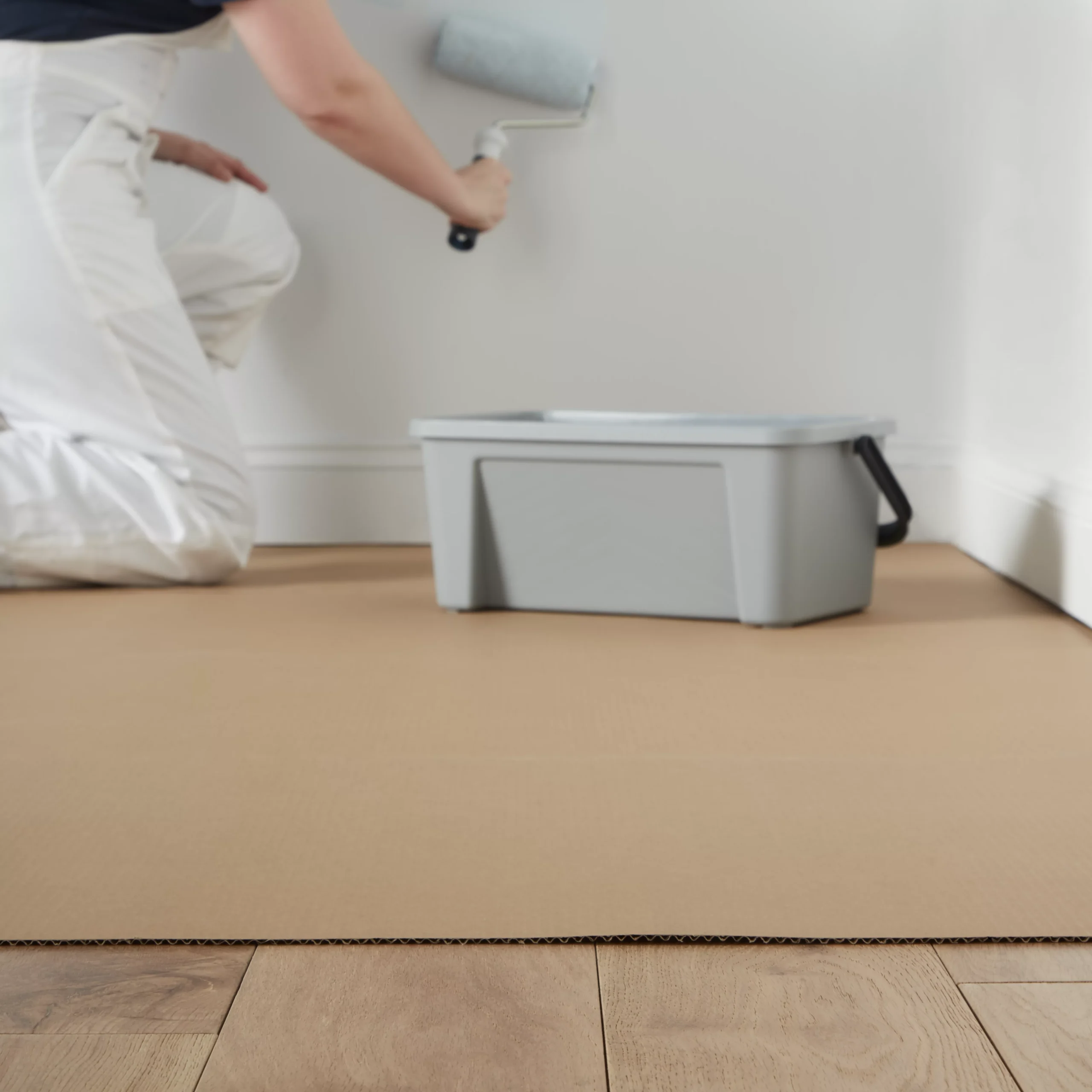- This corrugated cardboard roll is perfect for protecting floors and surfaces from paint, dust, and dirty footprints whilst decorating. Its dimensions make it ideal for hallways and staircases without having to slice or cut the width to fit.