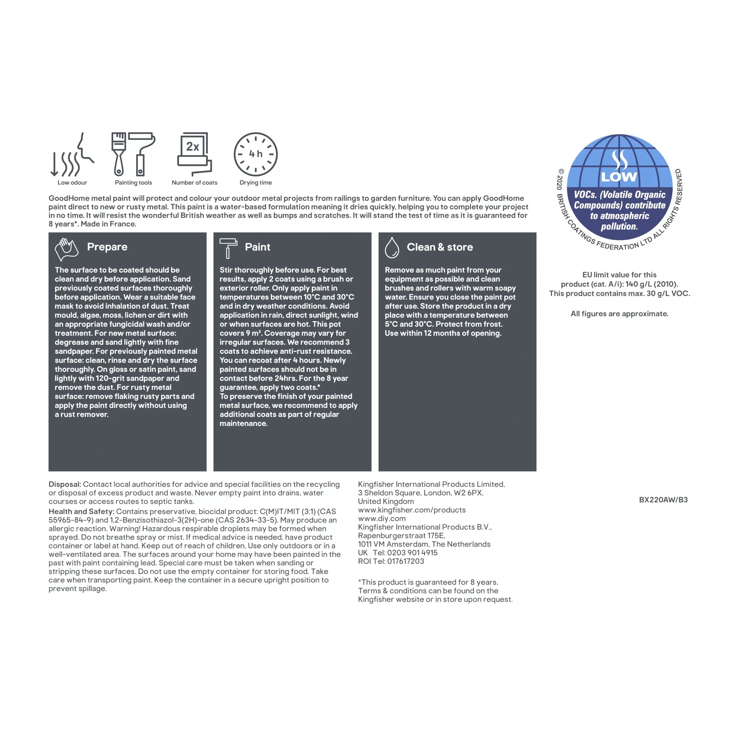 - Instructions for Use – Stir thoroughly before use. Apply between 10 ยฐC and 30 ยฐC. 2 or 3 coats are recommended for best results using a brush or roller.