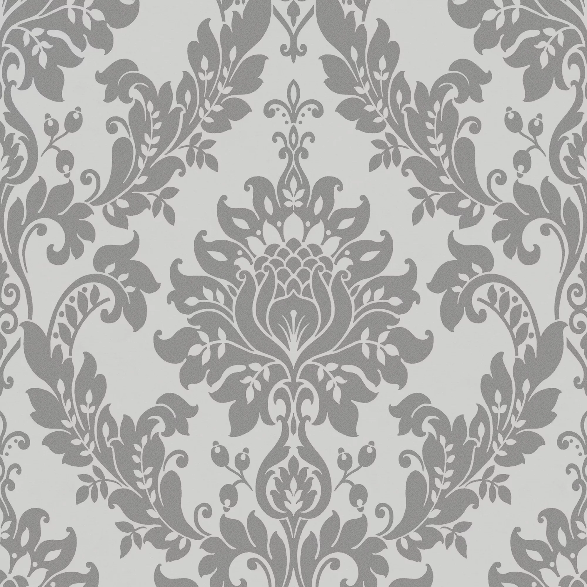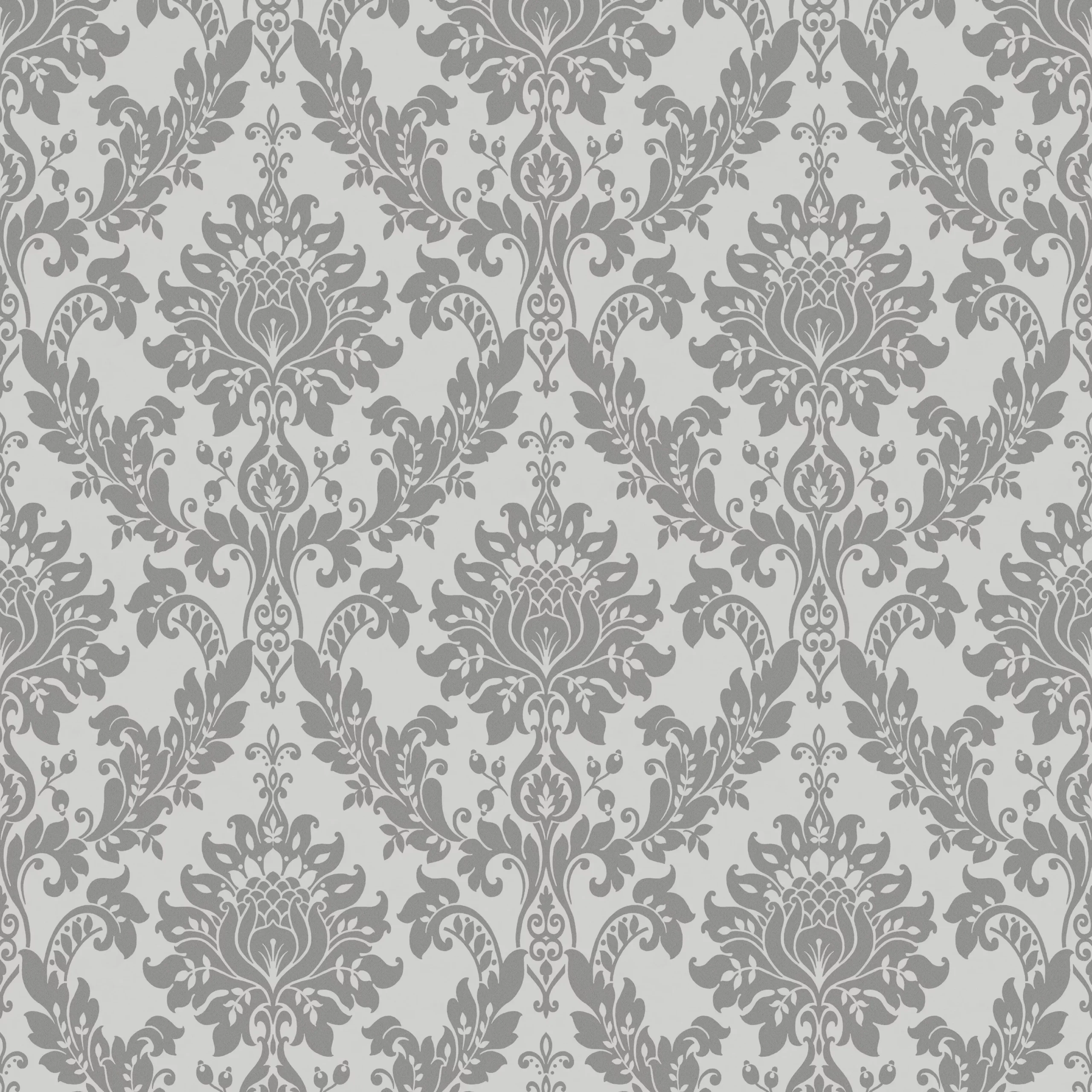 A genuine Italian heavyweight vinyl wallpaper with a classic damask print, modernised with a bead texture and glitter highlights.