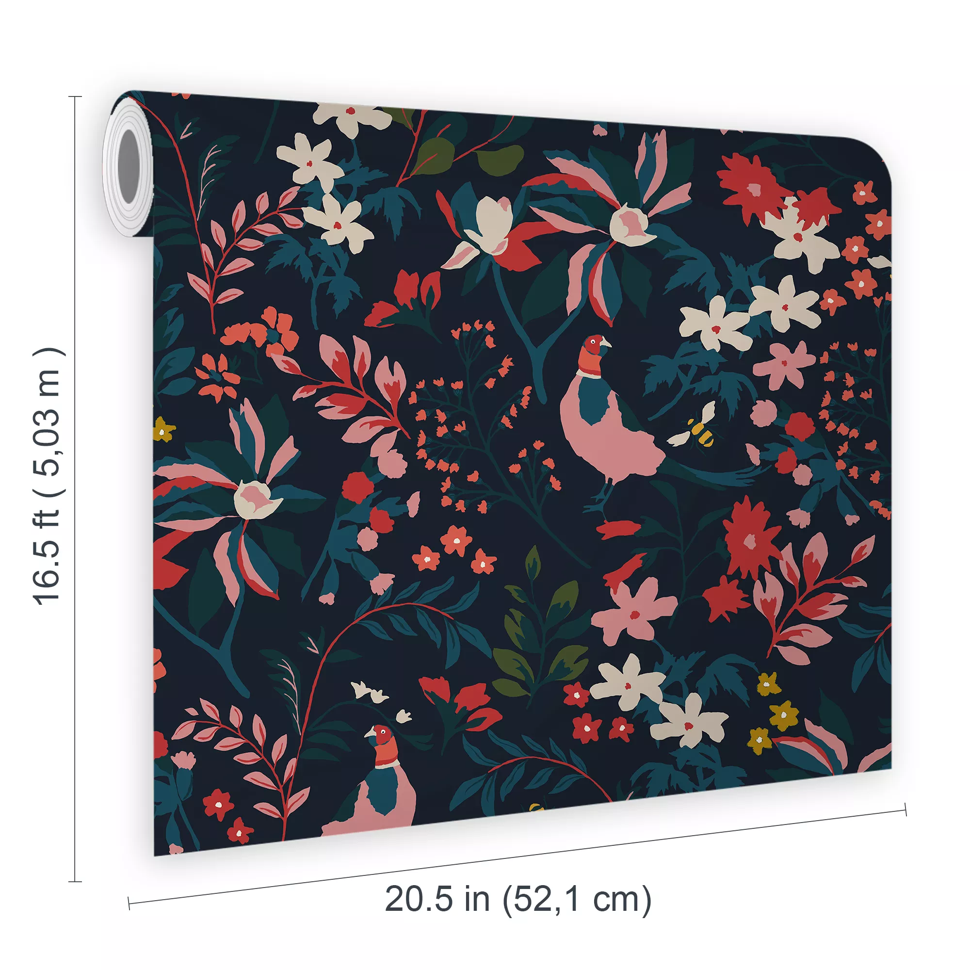 Bring a classic heritage look to your home and showcase nature at its most contemporary. This stunning design combines crisp, modern foliage, sprigs and flowers intertwined with characterful pheasants and bees. Perfect for bringing the outside in, this charming wallpaper design has a fun colour palette of pinks, reds and teals beautifully contrasted on a French navy background. This wallpaper is also paste-the-wall, making it easy to hang.