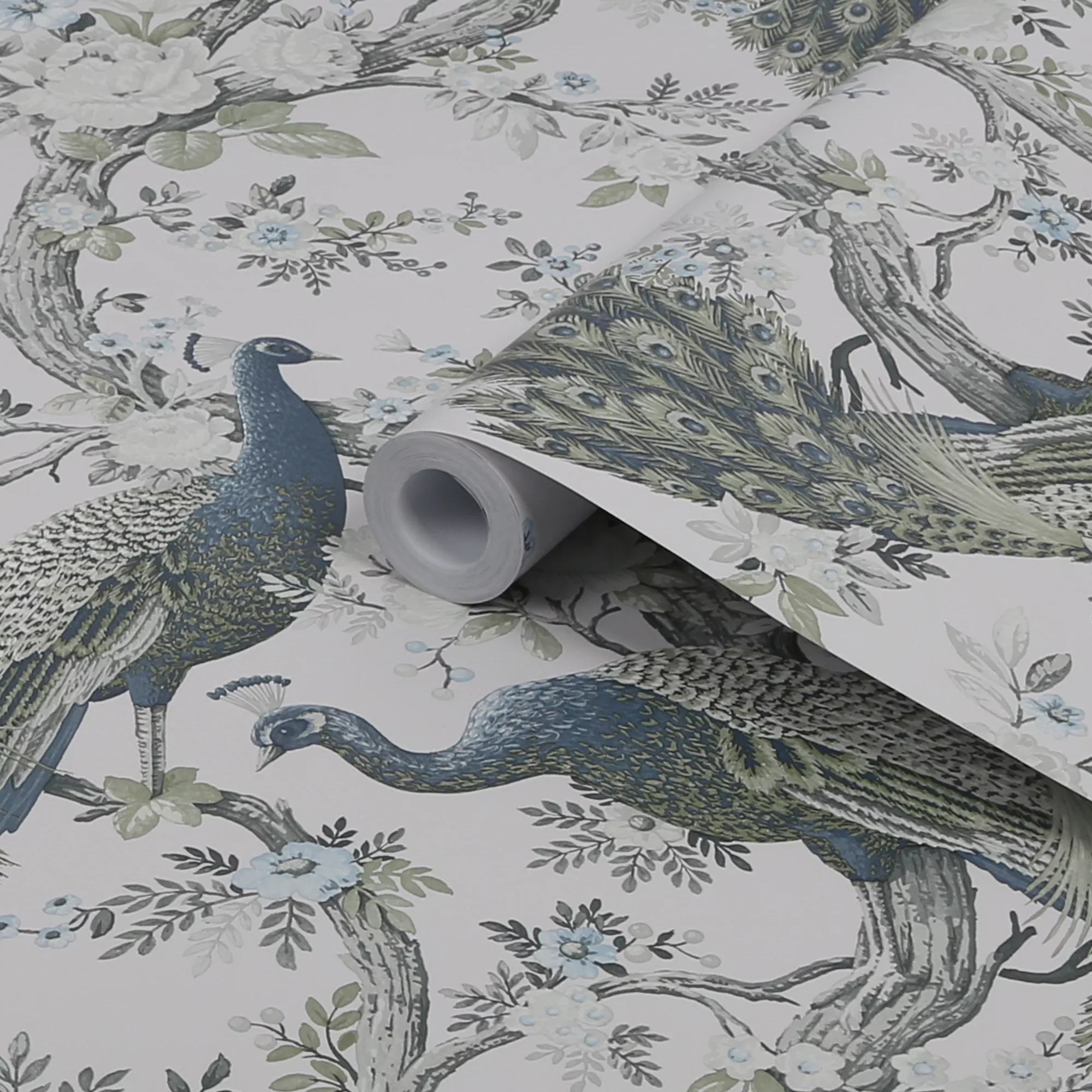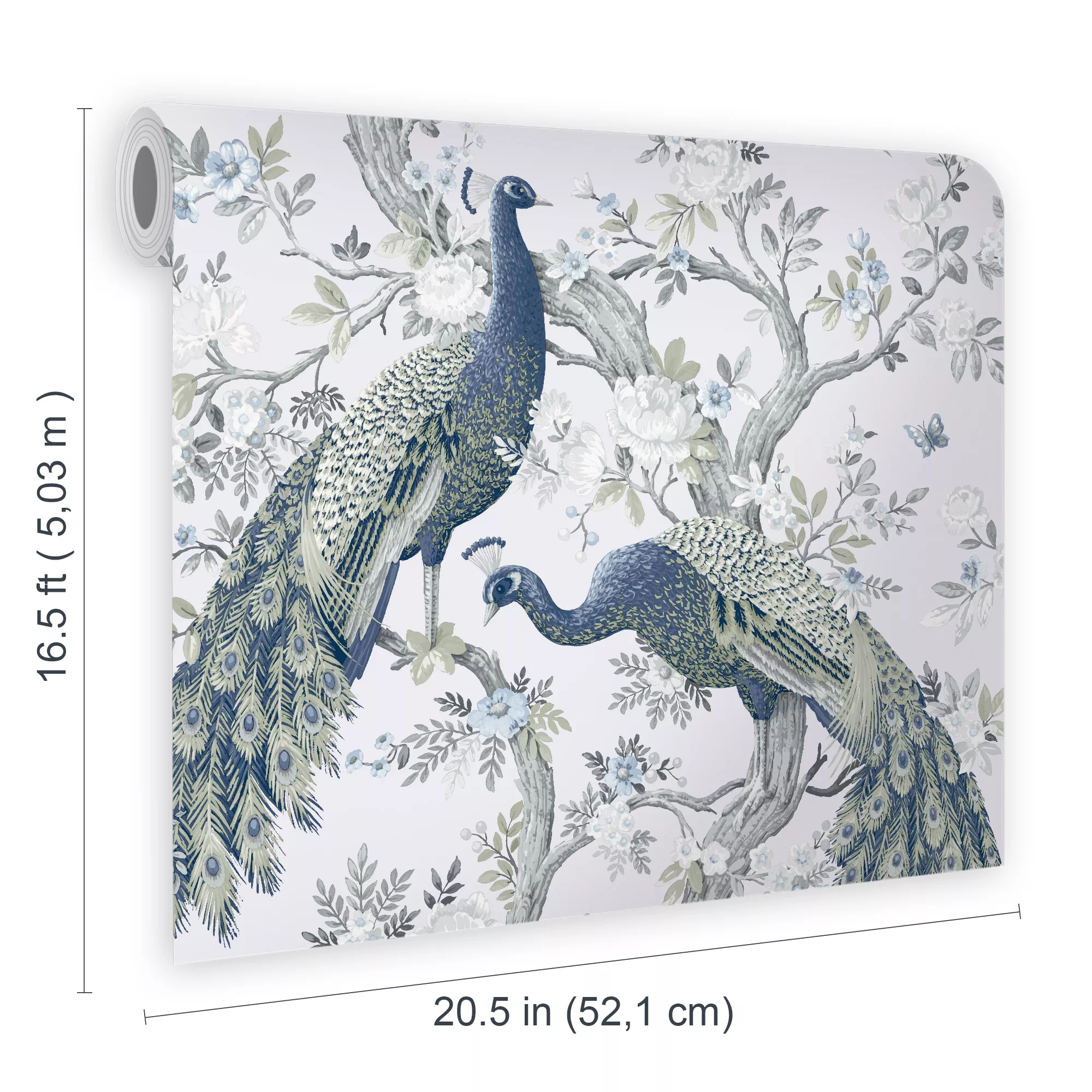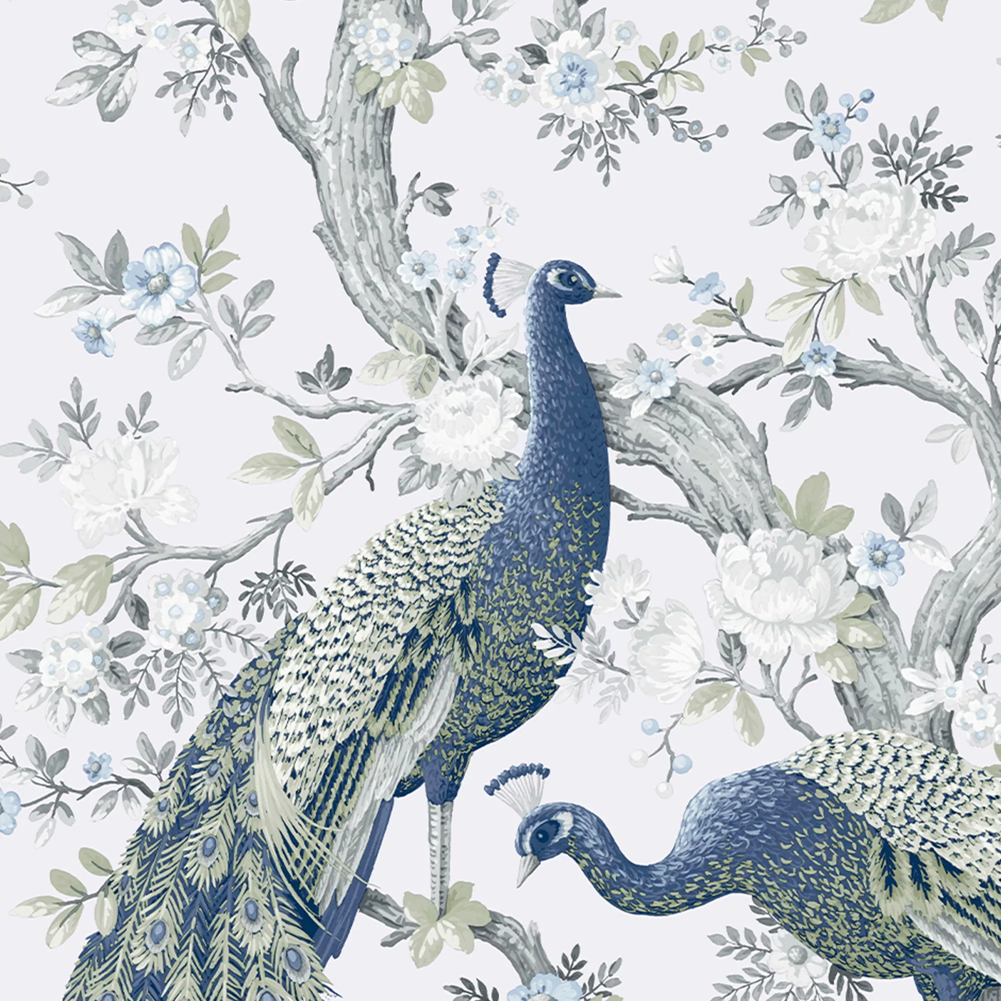 Classically ornate, Belvedere features elegant peacocks and timeless florals. In the midnight blue colourway, it is serene and stately.