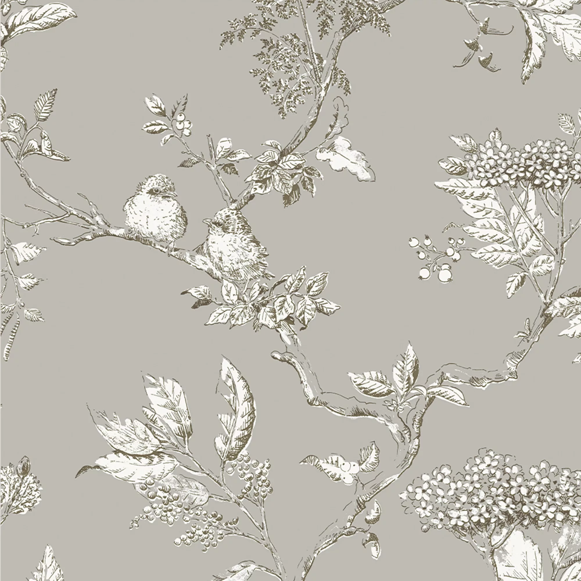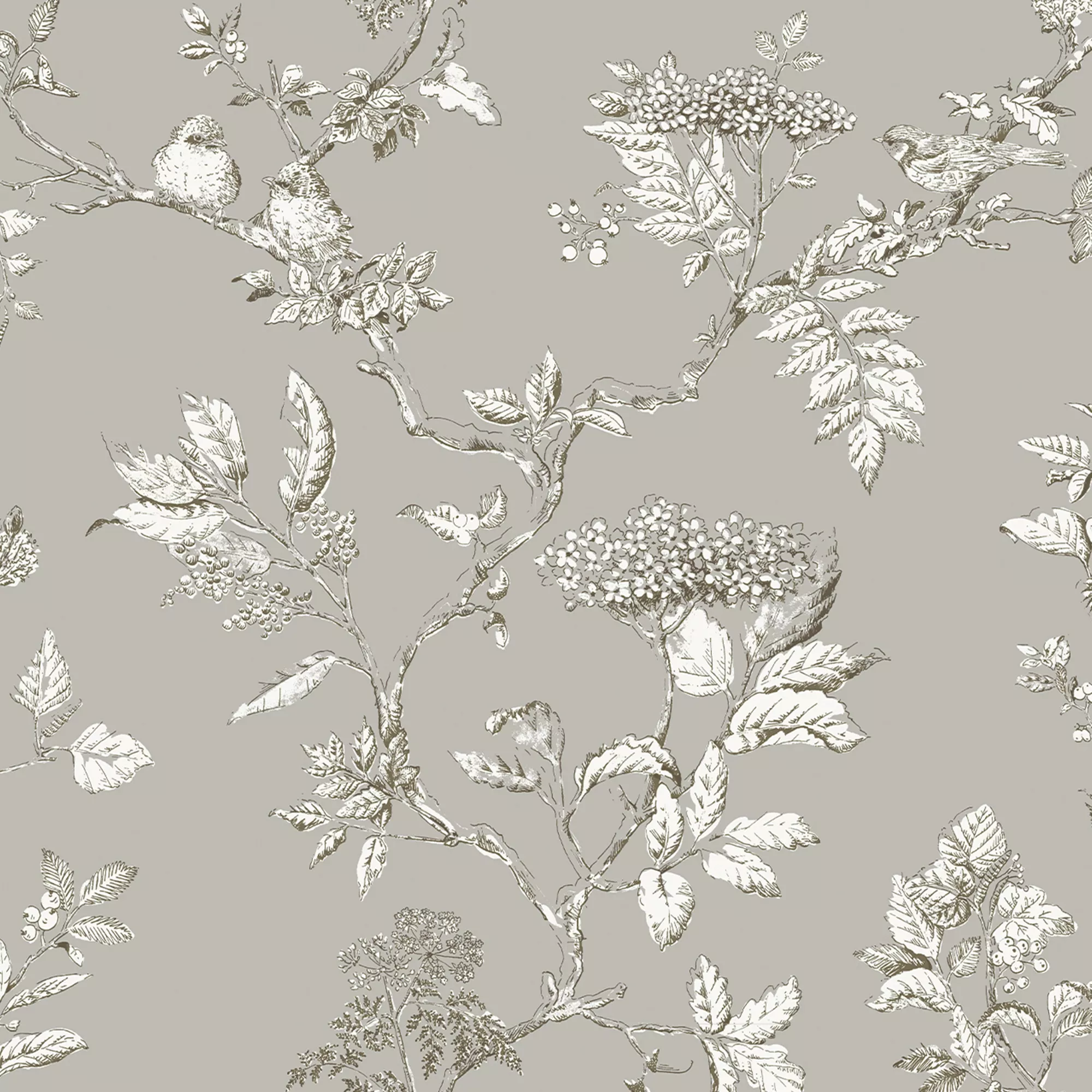 A contemporary twist to Laura Ashley’s heritage Elderwood design with hand drawn illustrative blossom and berries, set against a modern steel grey background.