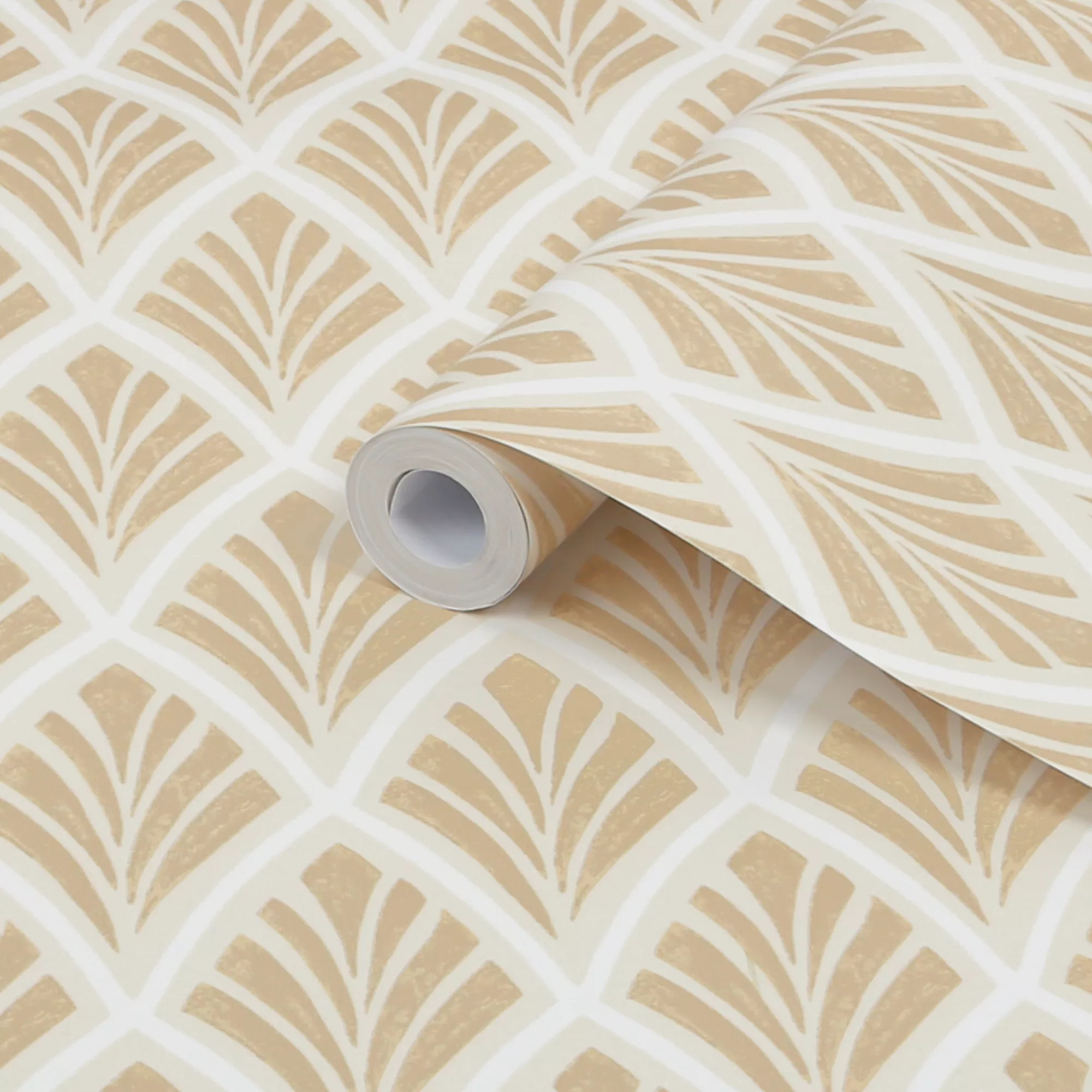 With Art Deco undertones, Florin is the ideal choice for elegant, glamorous interiors. In subtle pale gold effect, this printed wallpaper works wonderfully in bedrooms and living spaces.