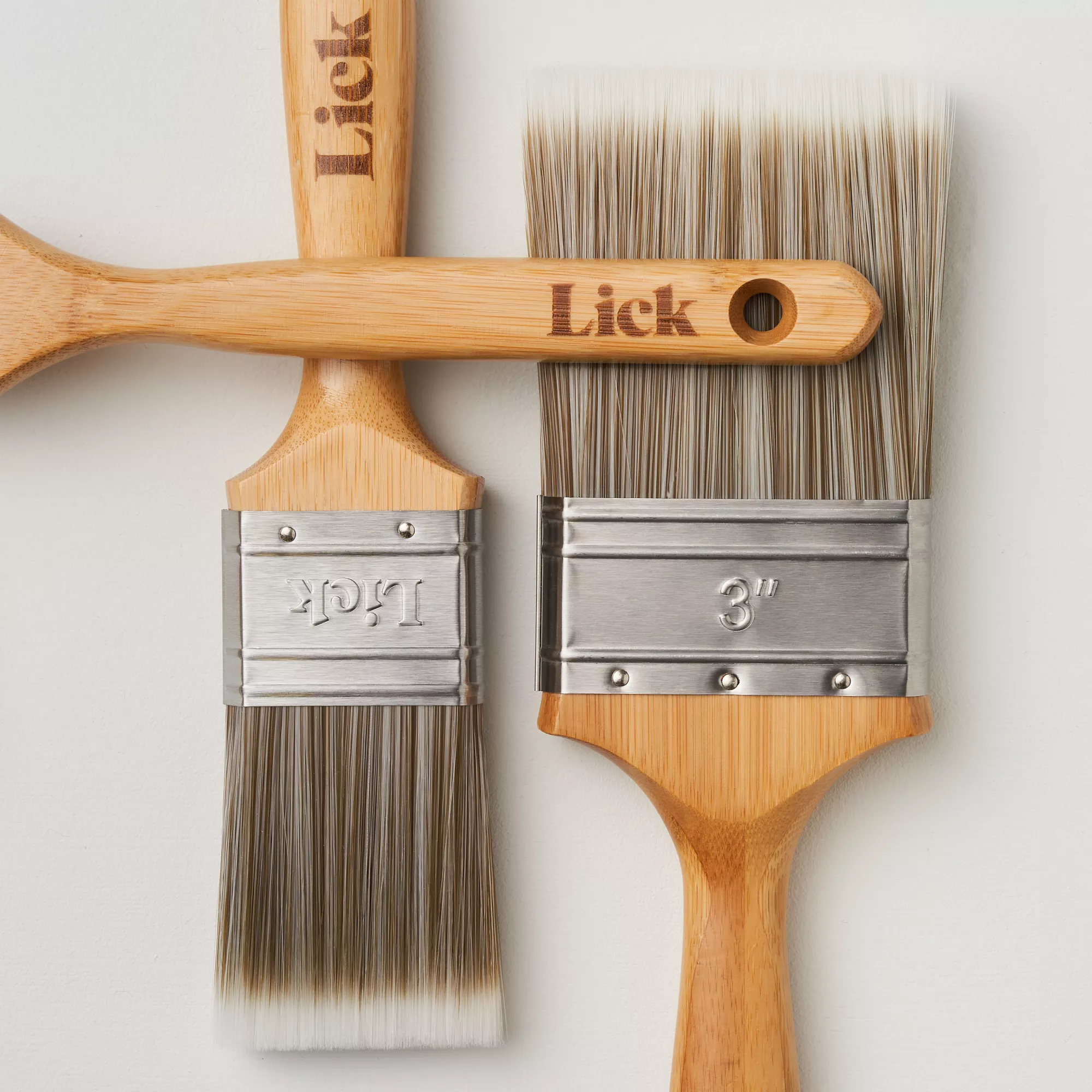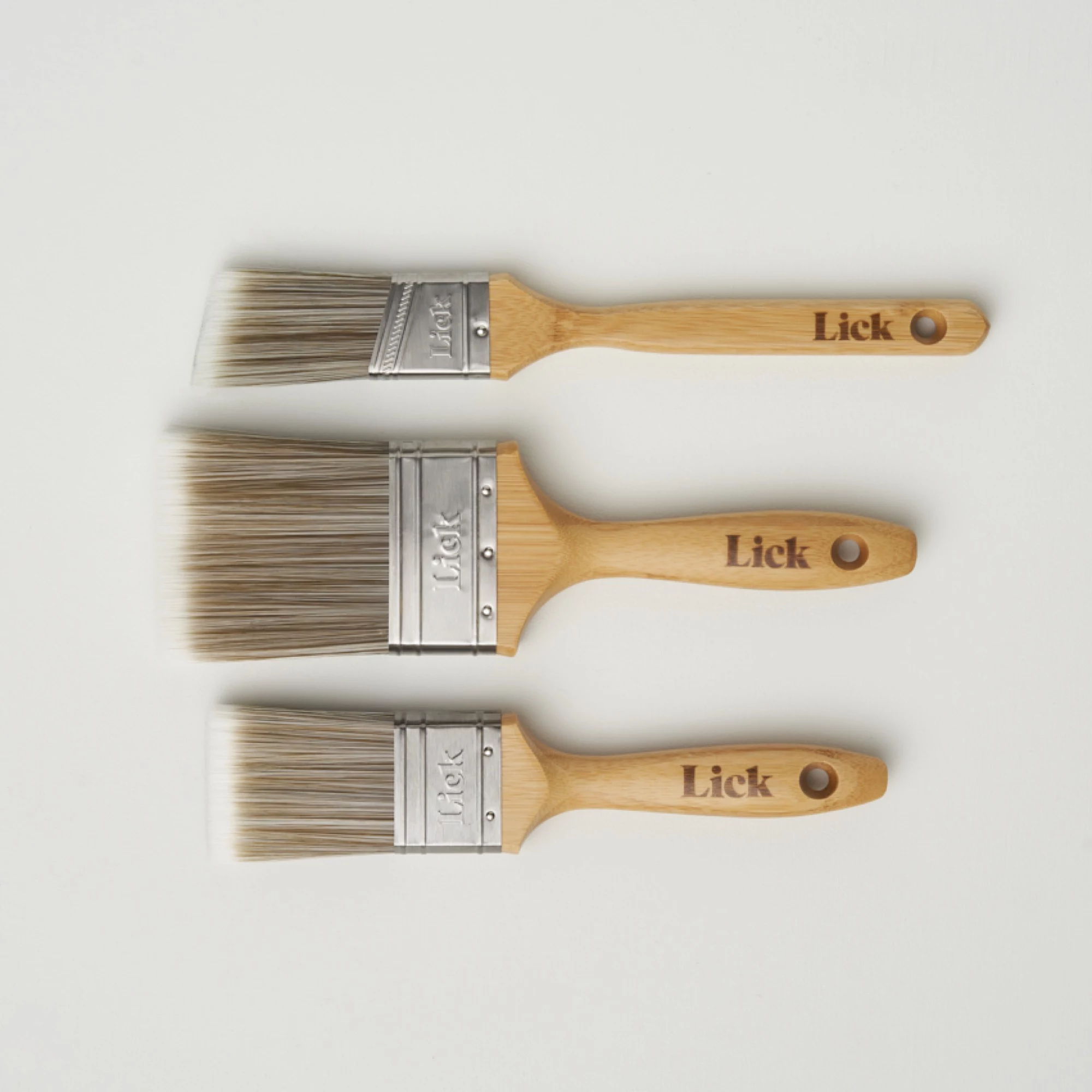 Lick has everything you need to complete your decorating project with confidence. This is the perfect brush set, with three different brushes designed to meet all your painting needs, from cutting-in to woodwork. Suitable for use with all paint type, these high-quality brushes are designed with ergonomic FSCยฎ-certified bamboo handles for a firm grip, durable bristle-mix and a recycled steel ferrule that won’t rust. LickTools is a certified B Corp and Carbon Neutral Company, providing eco-friendly tools that will stand the test of time, uncompromising on sustainability and quality. Choose LickTools.