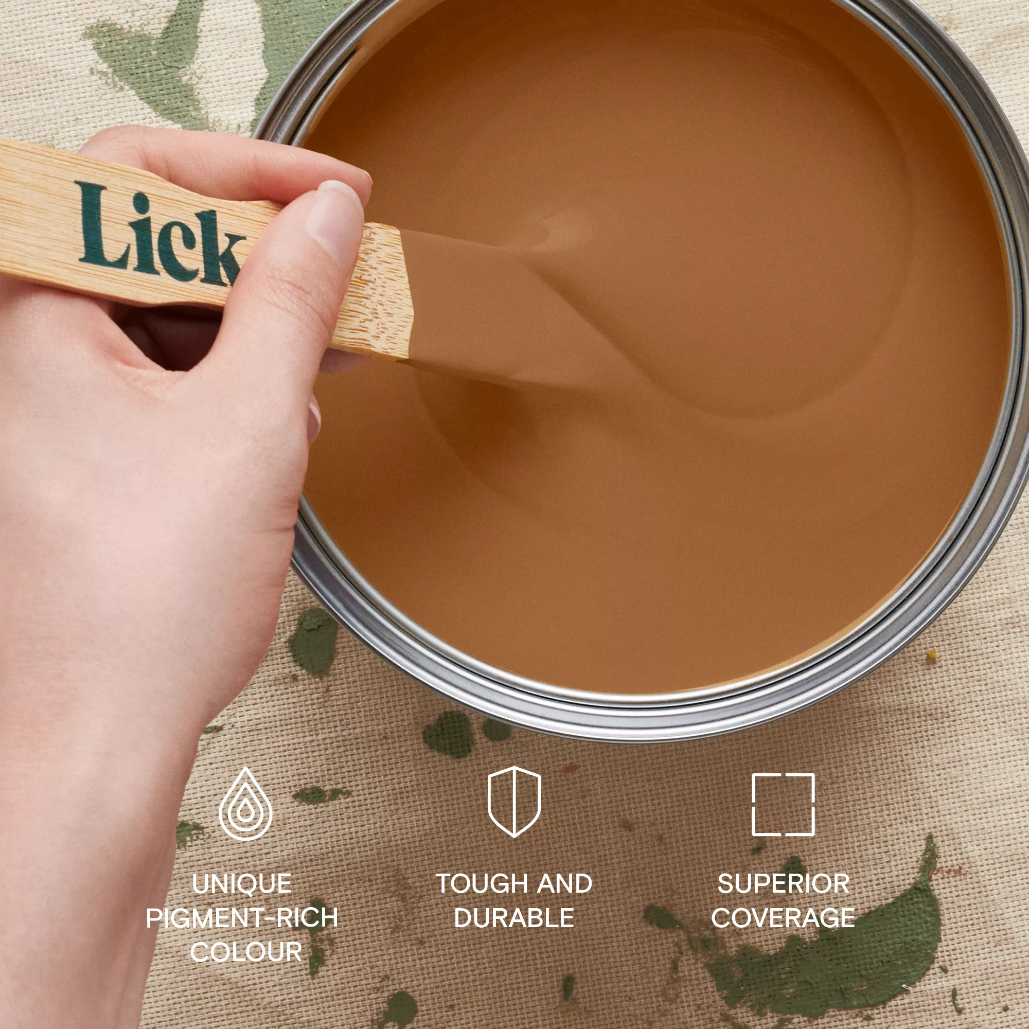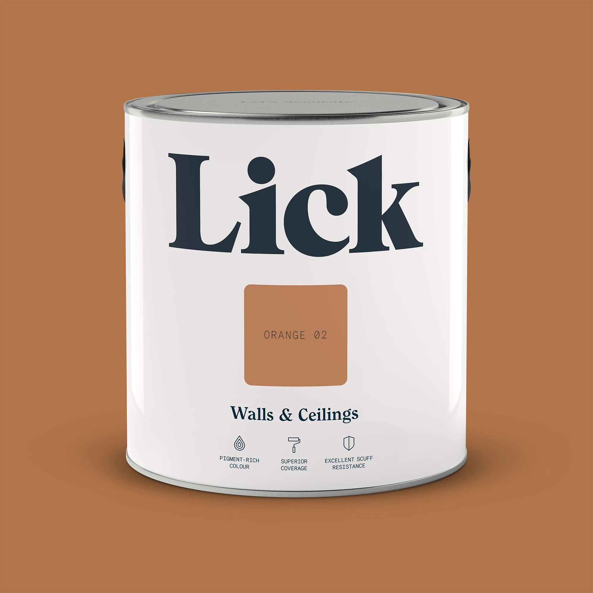 Lick hand-pick the finest pigments for their signature depth of colour. Their high-quality, technologically-advanced formulation is designed for a flawless finish and superior coverage. Orange 02 has a joyful quality that is comforting, making your space feel relaxing and peaceful. A rich earthy orange with warm brown undertones. Lick’s matt paint has a smooth finish that is scrubbable and stain resistant. You can cover 10m² – 13m² per litre, and Lick recommends you apply two coats for maximum long-term durability – just make sure your surfaces are clean and dry before you start decorating.
