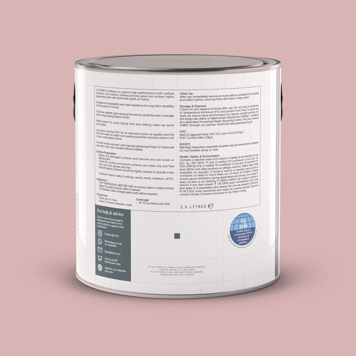 Lick hand-pick the finest pigments for their signature depth of colour. Their high-quality, technologically-advanced formulation is designed for a flawless finish and superior coverage. Pink 11 is a dark dusty rose pink with grey and lilac undertones – it has a nurturing delicate quality which makes your space feel cosy and warm. Lick’s matt paint has a smooth finish that is scrubbable and stain resistant. You can cover 10mยฒ – 13mยฒ per litre, and Lick recommends you apply two coats for maximum long-term durability – just make sure your surfaces are clean and dry before you start decorating.
