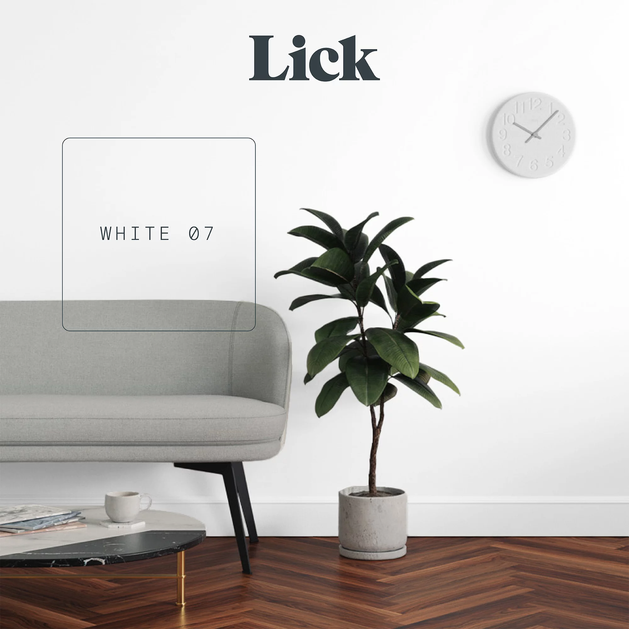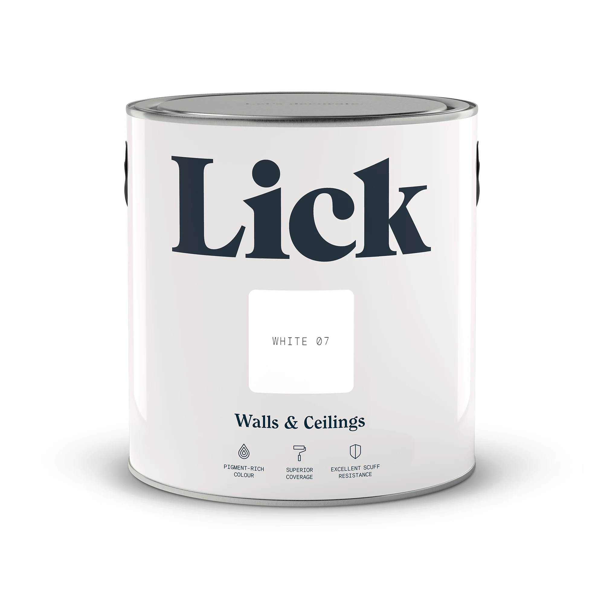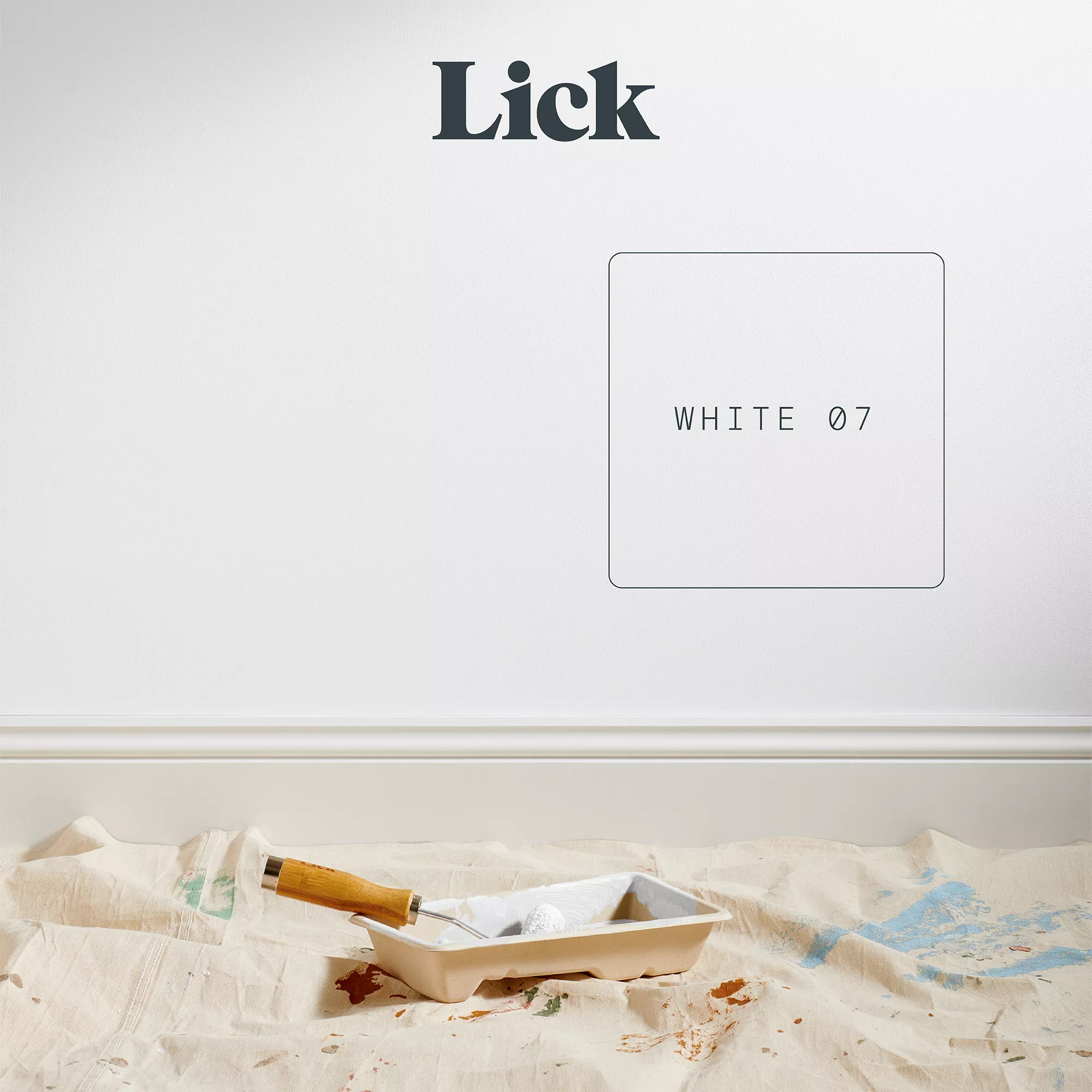 Lick hand-pick the finest pigments for their signature depth of colour. Their high-quality, technologically-advanced formulation is designed for a flawless finish and superior coverage. White 07 is a classic, bright white with nothing but white in its undertones. Soft and cool, this uncomplicated white makes your space feel restful and clean. Lickโs matt paint has a smooth finish that is scrubbable and stain resistant. You can cover 10mยฒ – 13mยฒ per litre, and Lick recommends you apply two coats for maximum long-term durability – just make sure your surfaces are clean and dry before you start decorating.