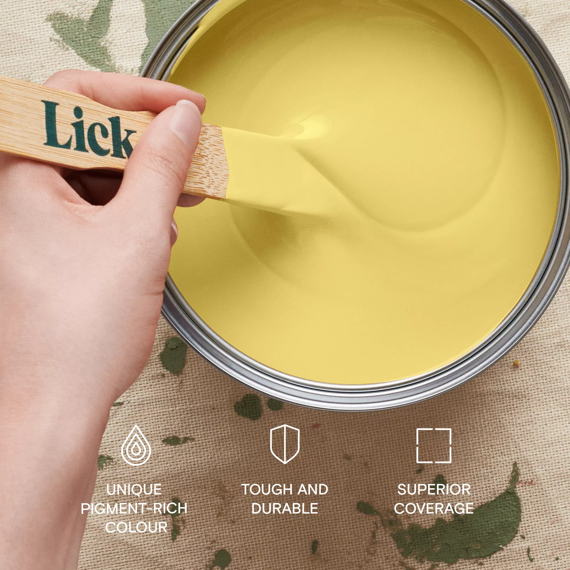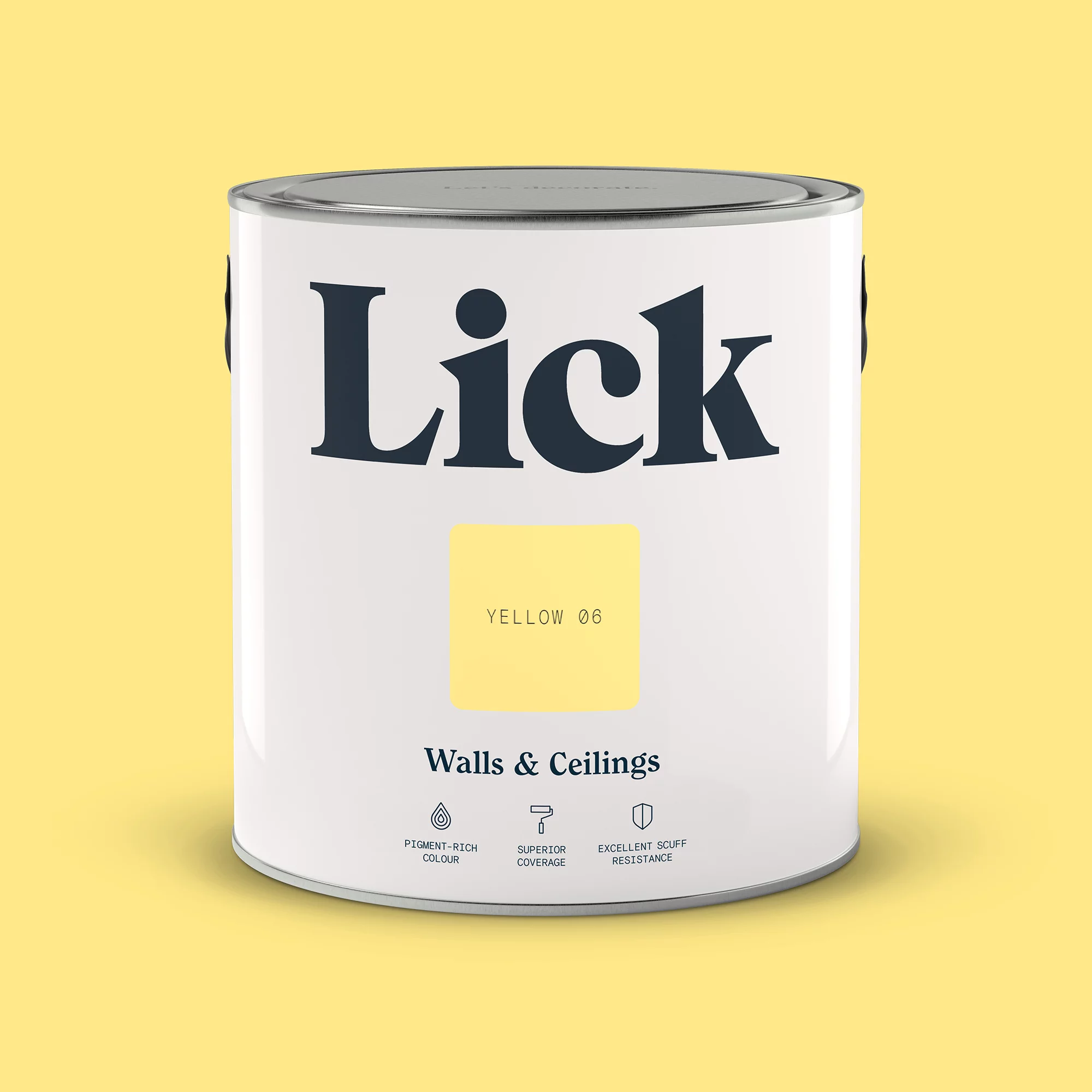 Lick hand-pick the finest pigments for their signature depth of colour. Their high-quality, technologically-advanced formulation is designed for a flawless finish and superior coverage. Yellow 06 is a mid warm yellow with white undertones, it has a bright and happy quality which enriches your space and fills you with optimism. Lick’s matt paint has a smooth finish that is scrubbable and stain resistant. You can cover 10mยฒ – 13mยฒ per litre, and Lick recommends you apply two coats for maximum long-term durability – just make sure your surfaces are clean and dry before you start decorating.